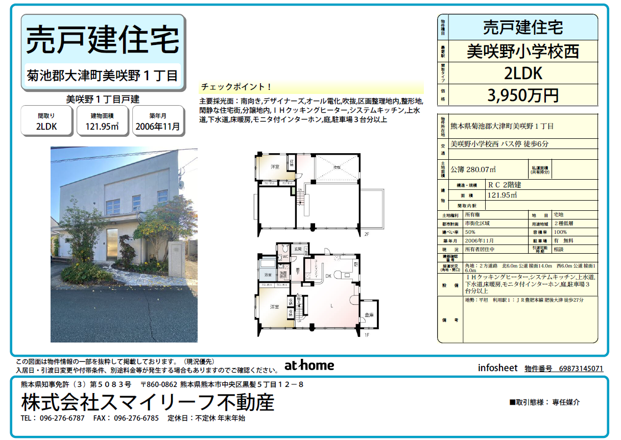 | 周辺環境4 | [中学校] 大津町立大津北中学校まで2,024m | ||||